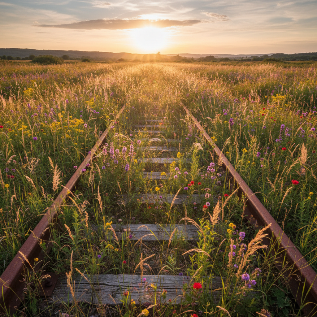 railwaywildflowersabandonedgolden-hour