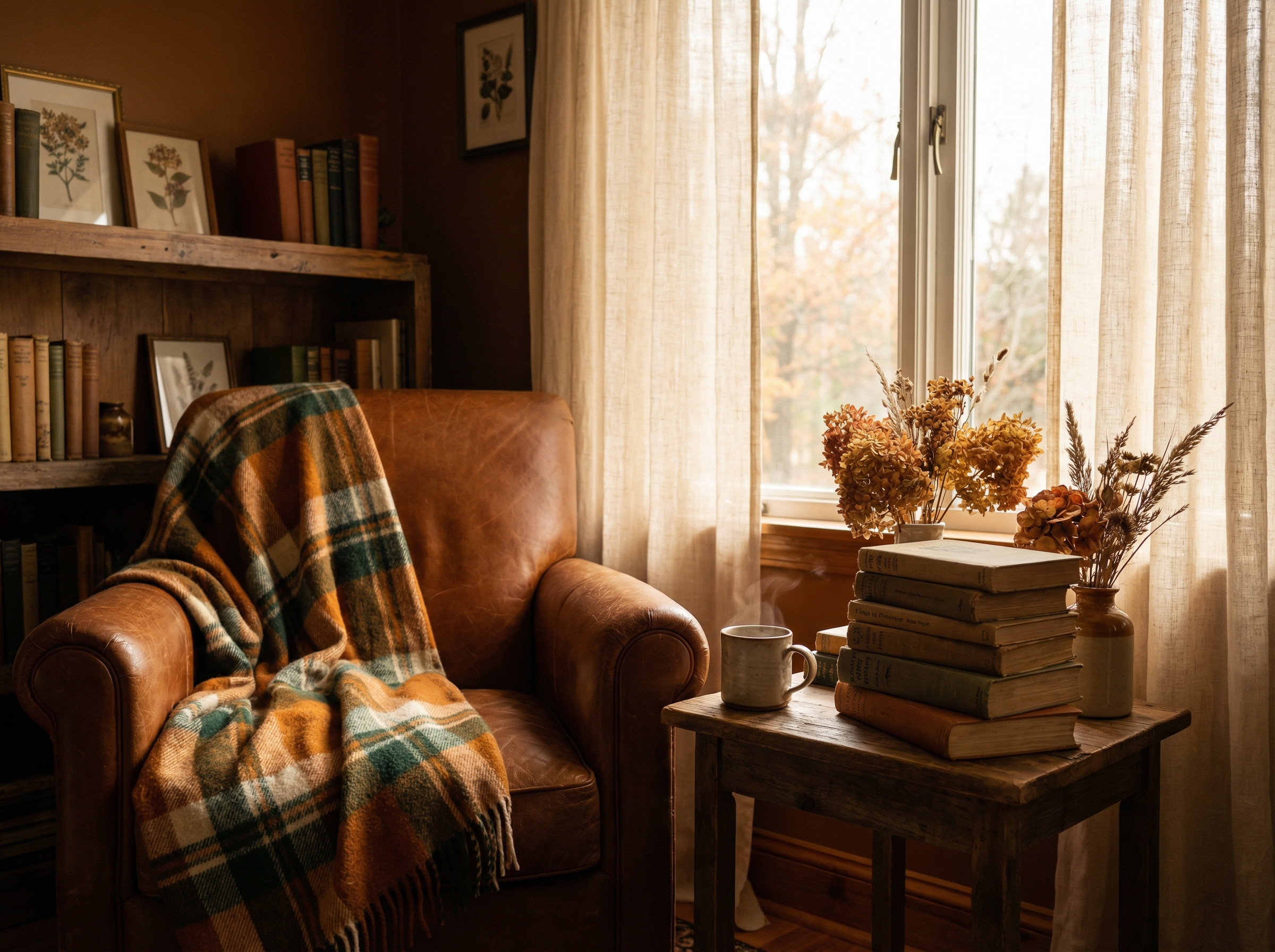 Autumn asks nothing of you but stillness. The tea goes cold, the blanket remembers your shape, and somewhere b…