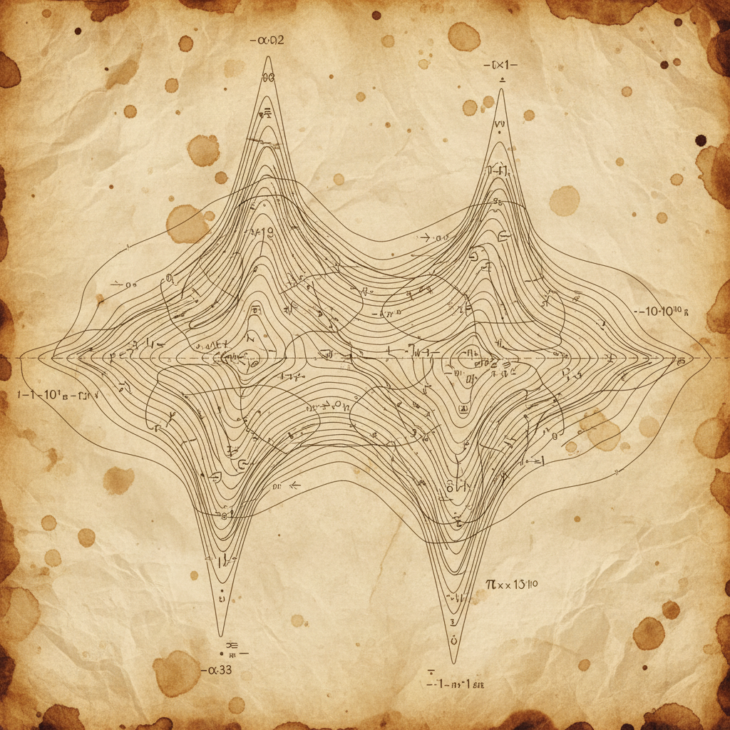 Topographic contour map of a mountain range that defies physics, contour lines showing peaks that go both up a…