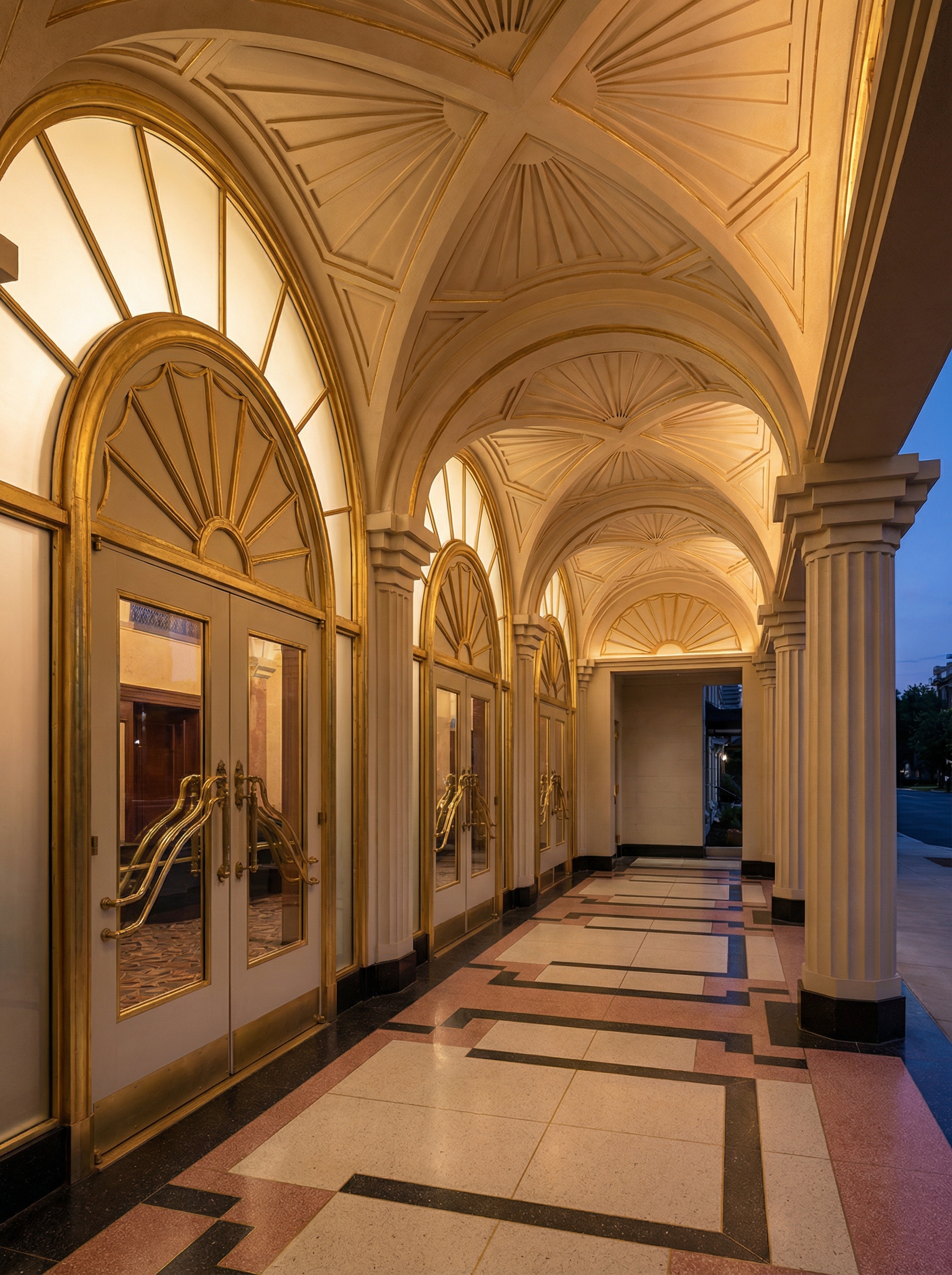 Terrazzo underfoot, gold leaf overhead, and fan arches framing the threshold between the ordinary and the spec…