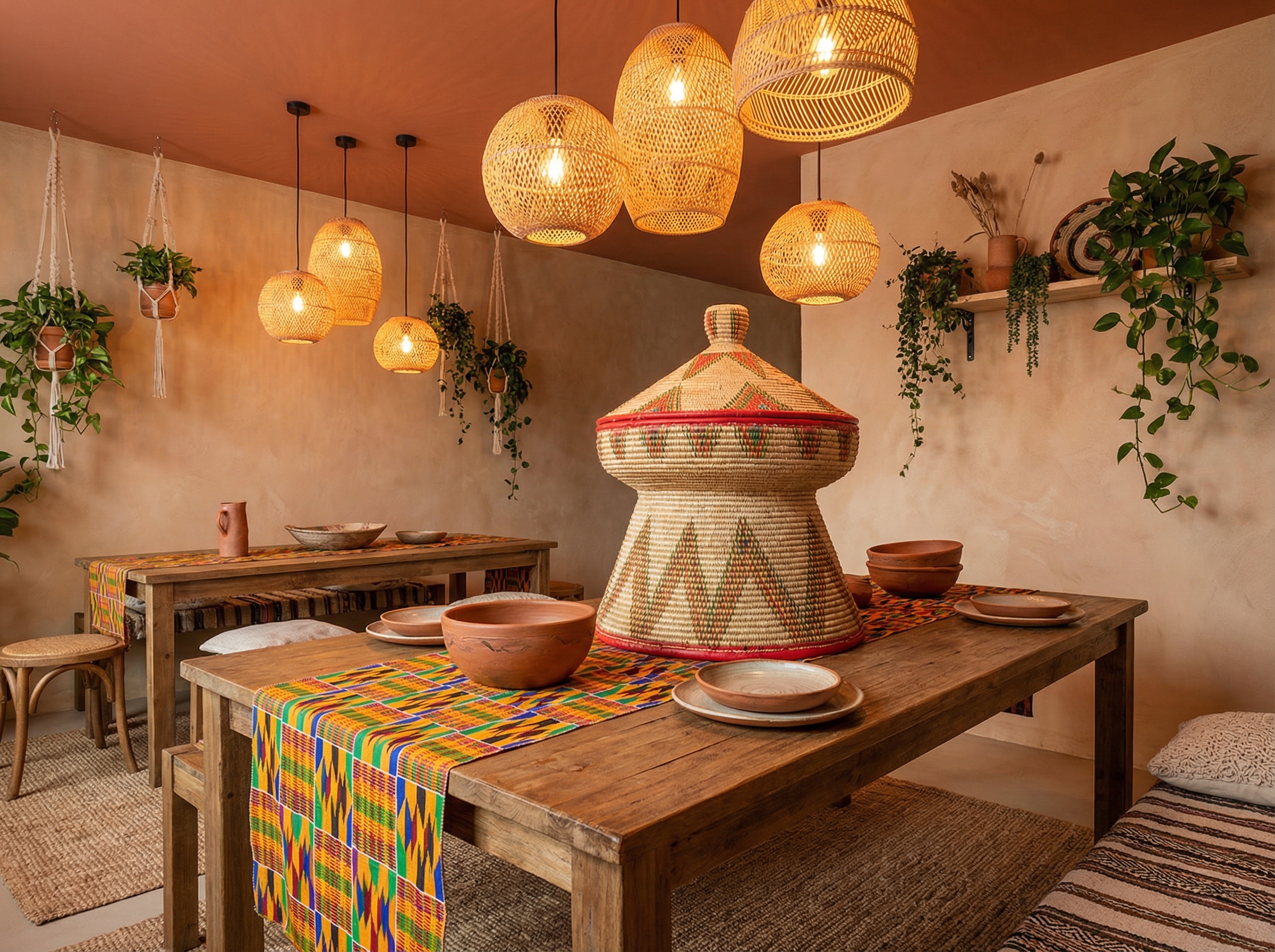 Where the mesob meets Kente, every meal becomes ceremony. Woven light falls on clay vessels that remember the …