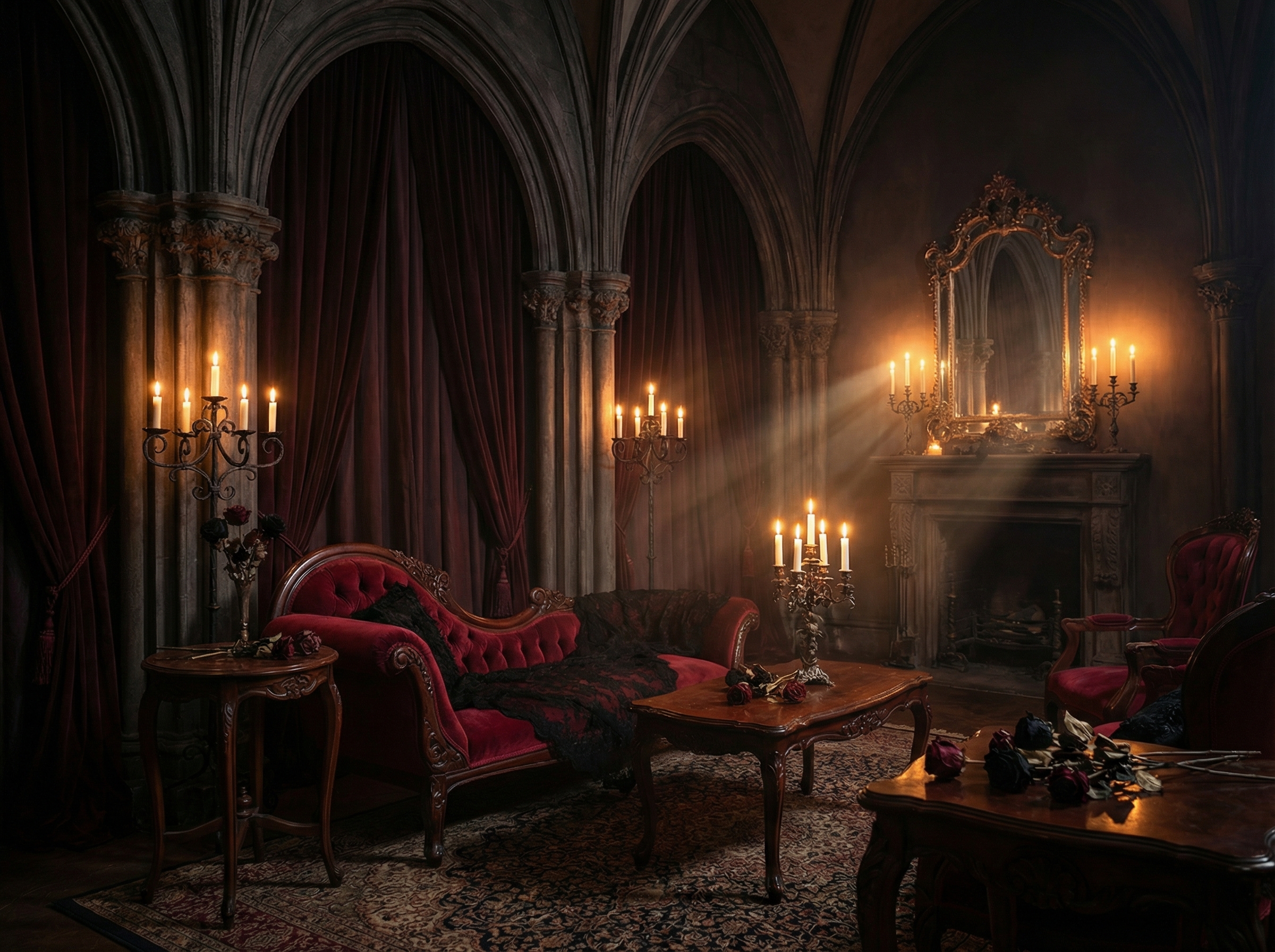 There are rooms that remember what it felt like to be worshipped. The chandelier still burns, suspended betwee…